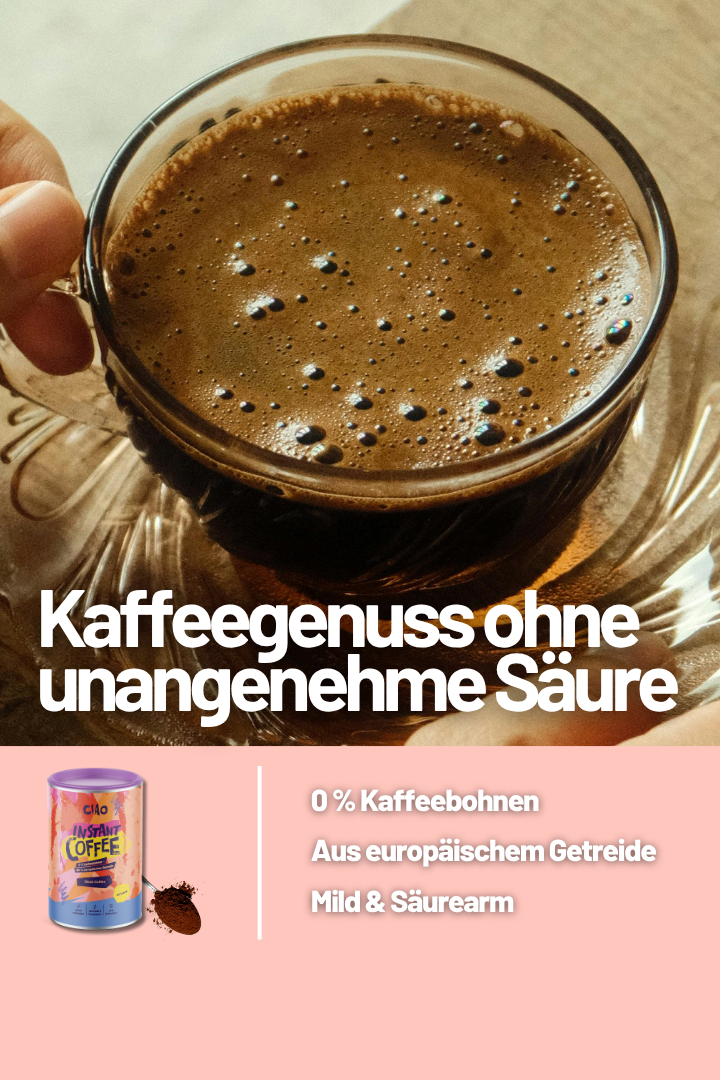 Der Geschmacke erinnert mich an Caro Kaffee von früher, ich finde das sehr lecker, vor allem brauchte ich eine Alternative zum Kaffee für meinen Magen, wollte aber nicht auf Koffein verzichten. Mir fällt auf, wie angenehm wach und fit der Ciao Kaffee mich macht ohne das flatterige und unangenehme Körpergefühl von zu viel Kaffee trinken.