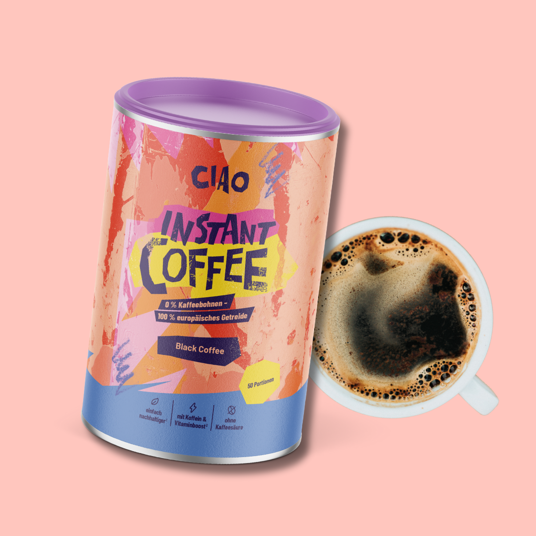 Daraus entstand unser Instant Black Coffee: aromatisch, gut verträglich und mit Koffein, Eisen & Vitamin B für einen sanften, langanhaltenden Energiekick. Heiß & schwarz. Pur oder so, wie du ihn liebst.
